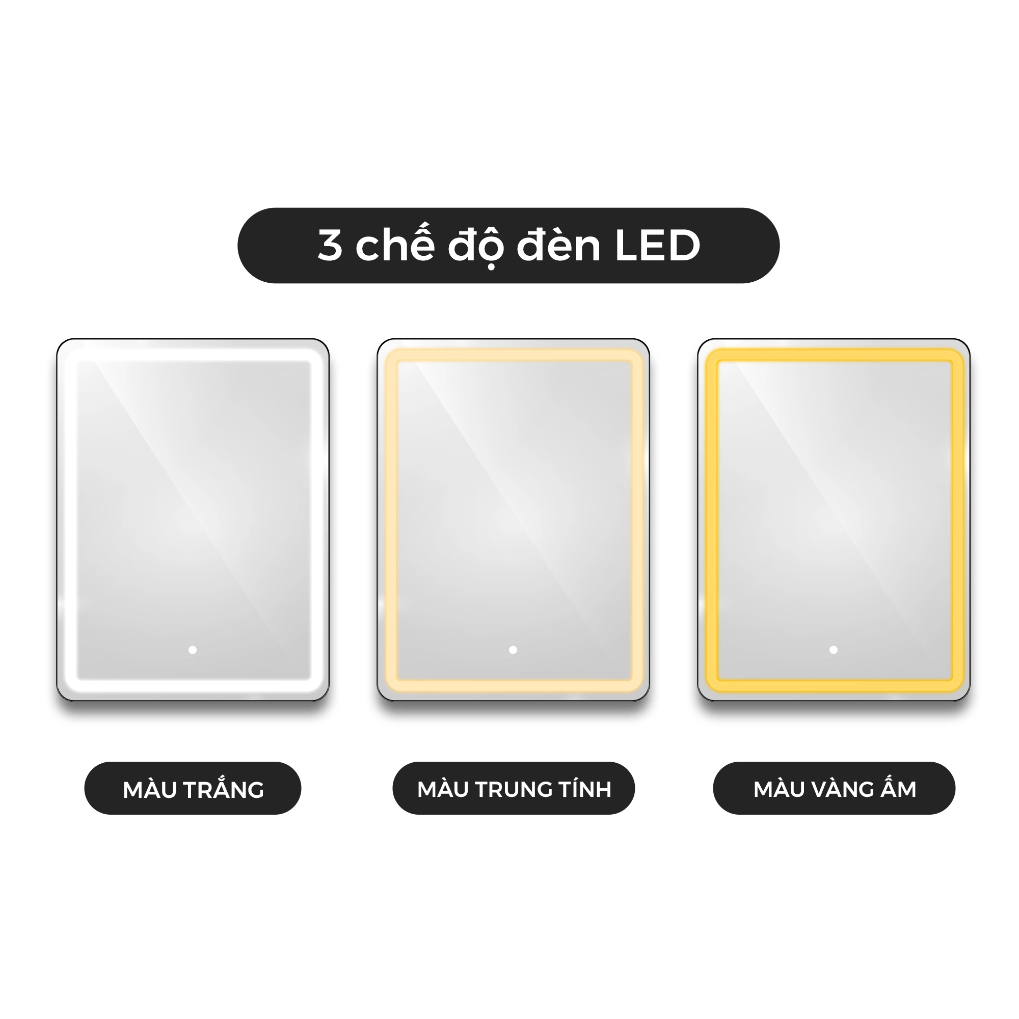 - Tính năng: Gương đèn LED 3 chế độ màu, bật tắt cảm ứng